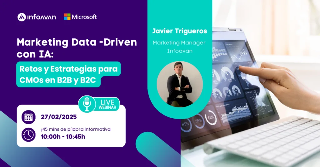 ¡Gracias por acompañarnos en nuestro exclusivo webinar sobre marketing data-driven con IA! En este evento, exploramos cómo la inteligencia artificial y el análisis de datos están redefiniendo las estrategias de marketing en B2B y B2C, permitiendo a los CMOs optimizar decisiones y maximizar el impacto de sus campañas.