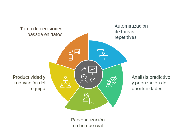 4. Mayor productividad y motivación del equipo: Al reducir la carga administrativa, los vendedores pueden dedicar más tiempo a actividades estratégicas, lo que mejora su desempeño y satisfacción laboral.